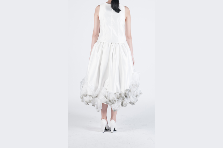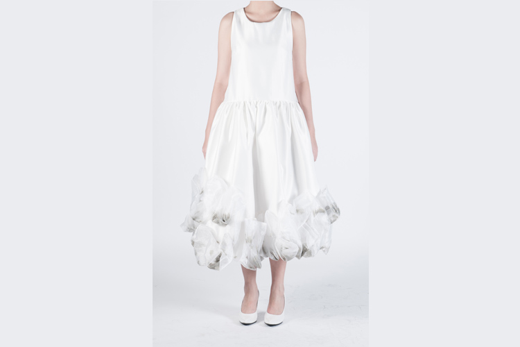 The prefect dinner dress this season! The sleeveless Earl Dress features a scoop neckline, silk organza fabric manipulations and a dropped-waist gathered skirt. Hidden zipper closure. White dutchness stain, fully lined underneath.